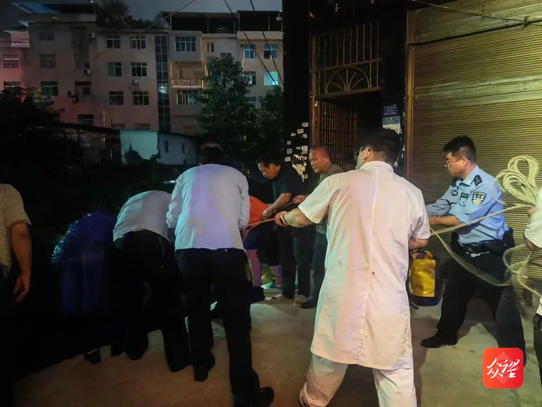 此刻,坑上坑下,一场生命接力正在紧张有序地进行。秦德芳医生在坑口指挥体格检查,廖国徽驾驶员则穿梭忙碌,及时递送所需的救援物资。在110、119、120和热心群众的共同努力下,一条坚实的“生命救援通道”被迅速搭建起来。经过约一个小时的紧张救援,伤者被成功转移至地面。急救团队一刻未停,立即上前为其建立静脉通道、测量生命体征,并快速完成初步评估。
